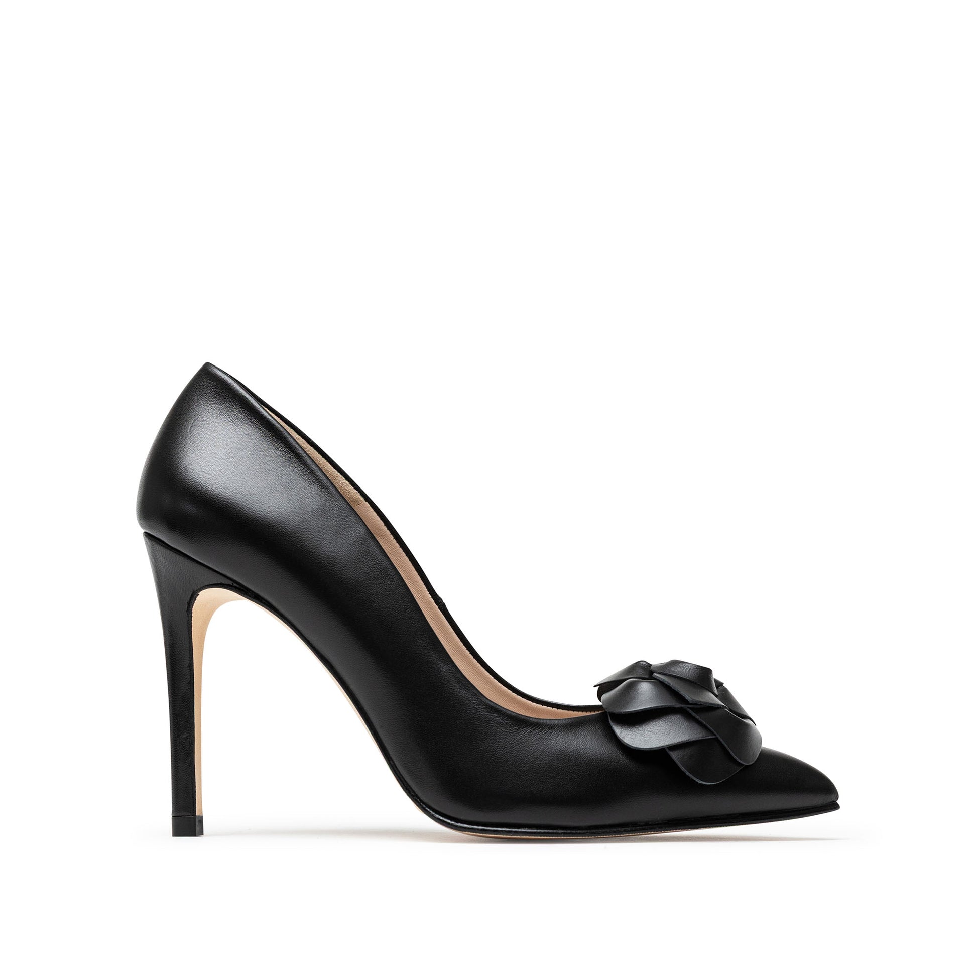 El modelo Shasa reinterpreta la feminidad con un estilo sofisticado y delicado. Su flor artesanal en napa negra, elaborada pétalo a pétalo, aporta un encanto sutil y elegante que convierte este salón en un diseño único, equilibrado y lleno de personalidad.